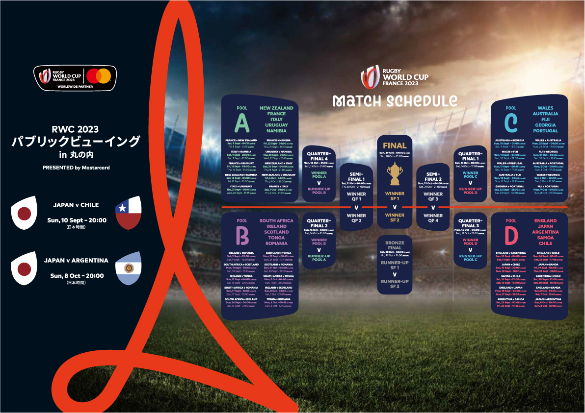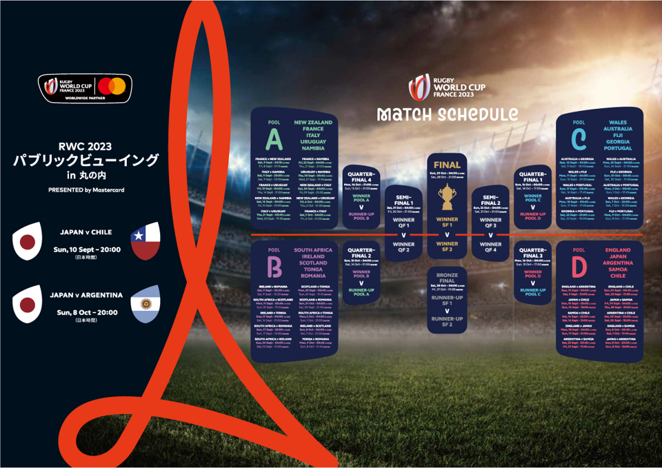 - Mastercard、「RWC 2023 パブリックビューイング in 丸の内 PRESENTED by Mastercard」を9月10日(日)、10月8日(日)に丸ビル1階 マルキューブにて開催!