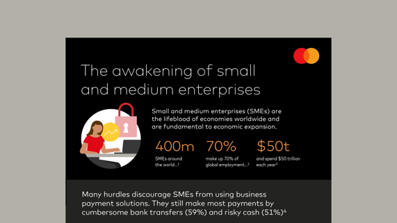 Despite the wide range of payment solutions available today, SME payments are still dominated by cumbersome bank transfers and risky cash. And many SMEs that do use credit or debit cards primarily rely on personal products, not business cards. Yet today’s innovative business accounts offer benefits and services designed to help them build their business, such as dynamic and higher lines of credit, tailored offers and rewards and financial management tools.