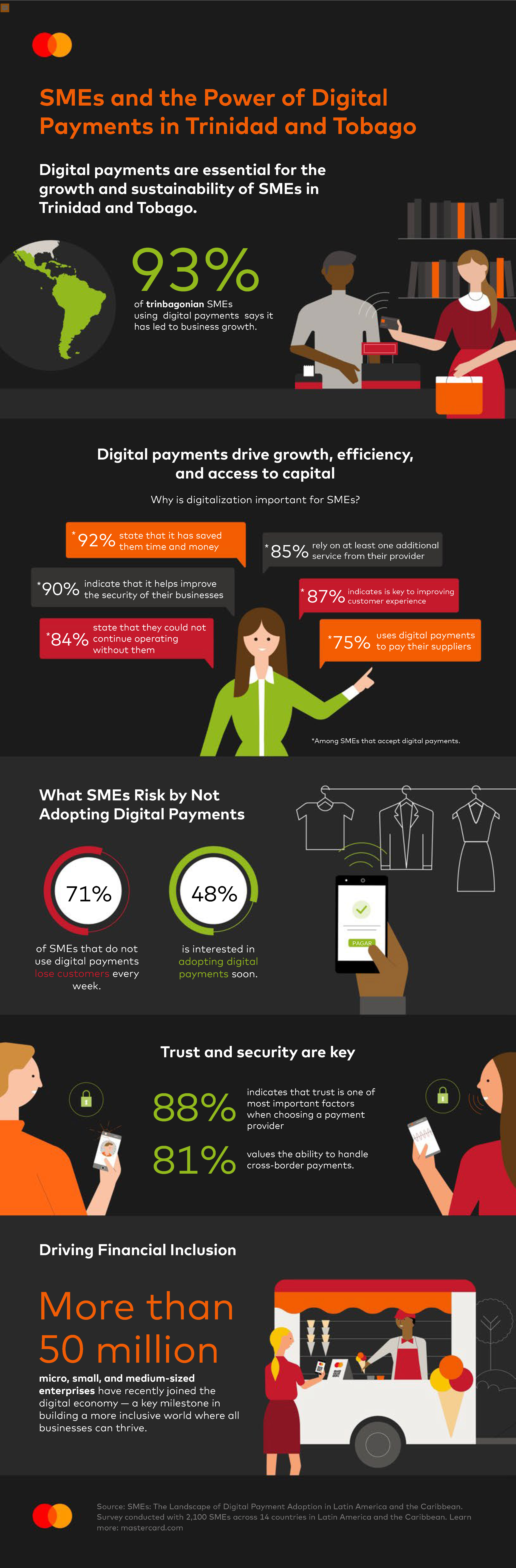 Mastercard, the global technology company in the payments industry, has released its latest research report, SMEs: The Digital Payments Adoption Landscape in Latin America and the Caribbean. The study reveals how small and medium-sized enterprises (SMEs) are leveraging digital payments to grow, scale, and strengthen their businesses in an increasingly digital economy. In Trinidad and Tobago, where 150 SME owners and directors were surveyed, the findings show that 93% of SMEs that already accept digital payments consider them essential or very important to their success, while 92% say they save time and money by using them.