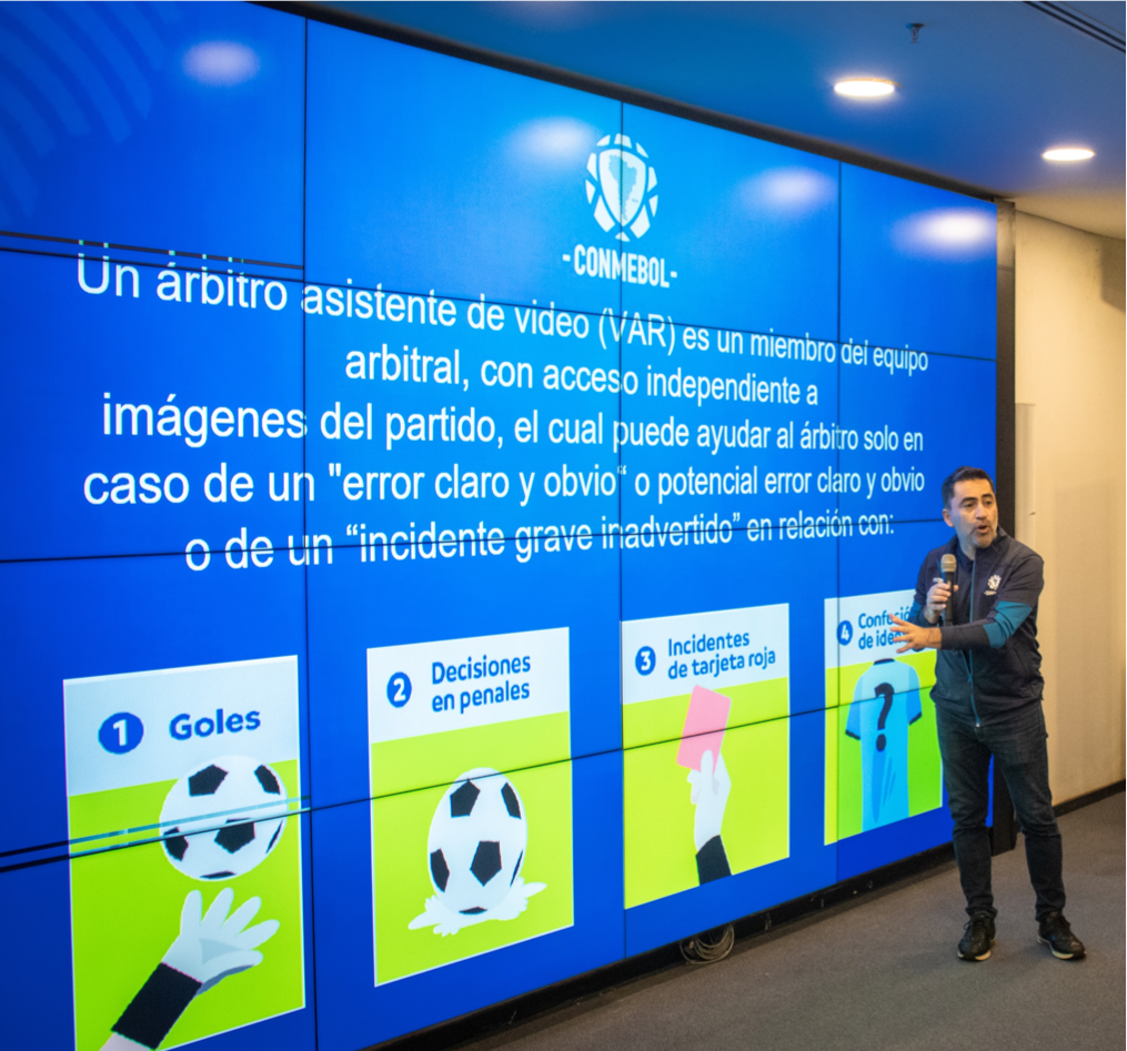 Los Árbitros del Centro de Entrenamiento Tecnológico Arbitral (CETA) encabezaron la jornada de capacitación en el uso y reglas del VAR, organizada por Mastercard, con el apoyo de la CONMEBOL.