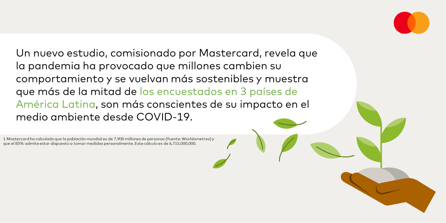 Miami, Florida, 13 de abril, 2021 – Una nueva investigación sobre sostenibilidad, encargada por Mastercard, revela un marcado aumento de la pasión de los consumidores por el medio ambiente como resultado del COVID-19. Más de la mitad de los encuestados en todo el mundo (54%) considera que reducir su huella de carbono es más importante ahora que antes de la pandemia. Esto indica una tendencia creciente hacia el gasto y el consumo con conciencia ecológica entre las personas que quieren convertir sus compras y el canje de recompensas en una acción significativa para el planeta.