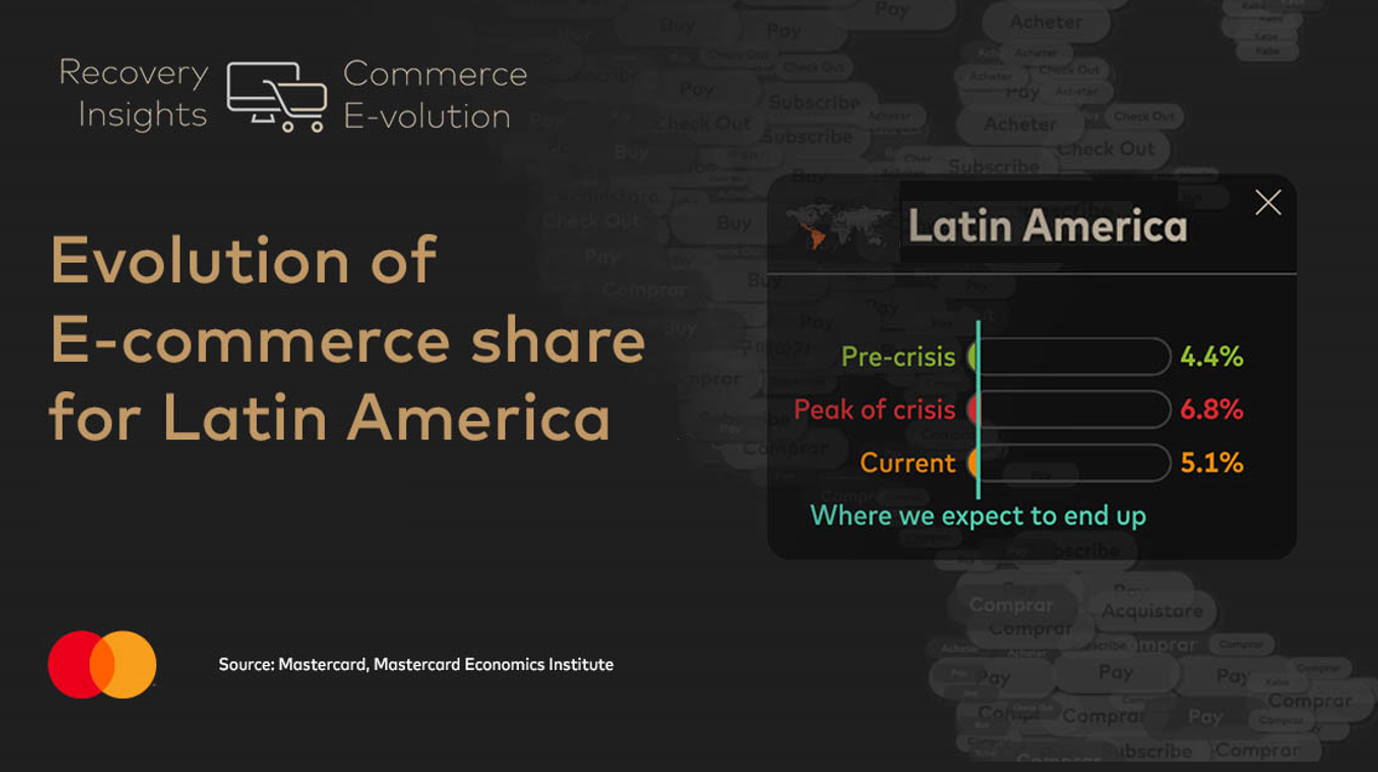 Se espera que entre el 20-30% de la preferencia por lo digital a causa del COVID a nivel mundial sea permanente, según el informe Recovery Insights de Mastercard: Commerce E-volution (La Evolución del Comercio Electrónico). Este informe se basa en la actividad de ventas anónima y agregada en la red de Mastercard y en un análisis exclusivo del Mastercard Economics Institute. El análisis profundiza en lo que esto significa por país y por sector para bienes y servicios, dentro de los países y a través de las fronteras.
