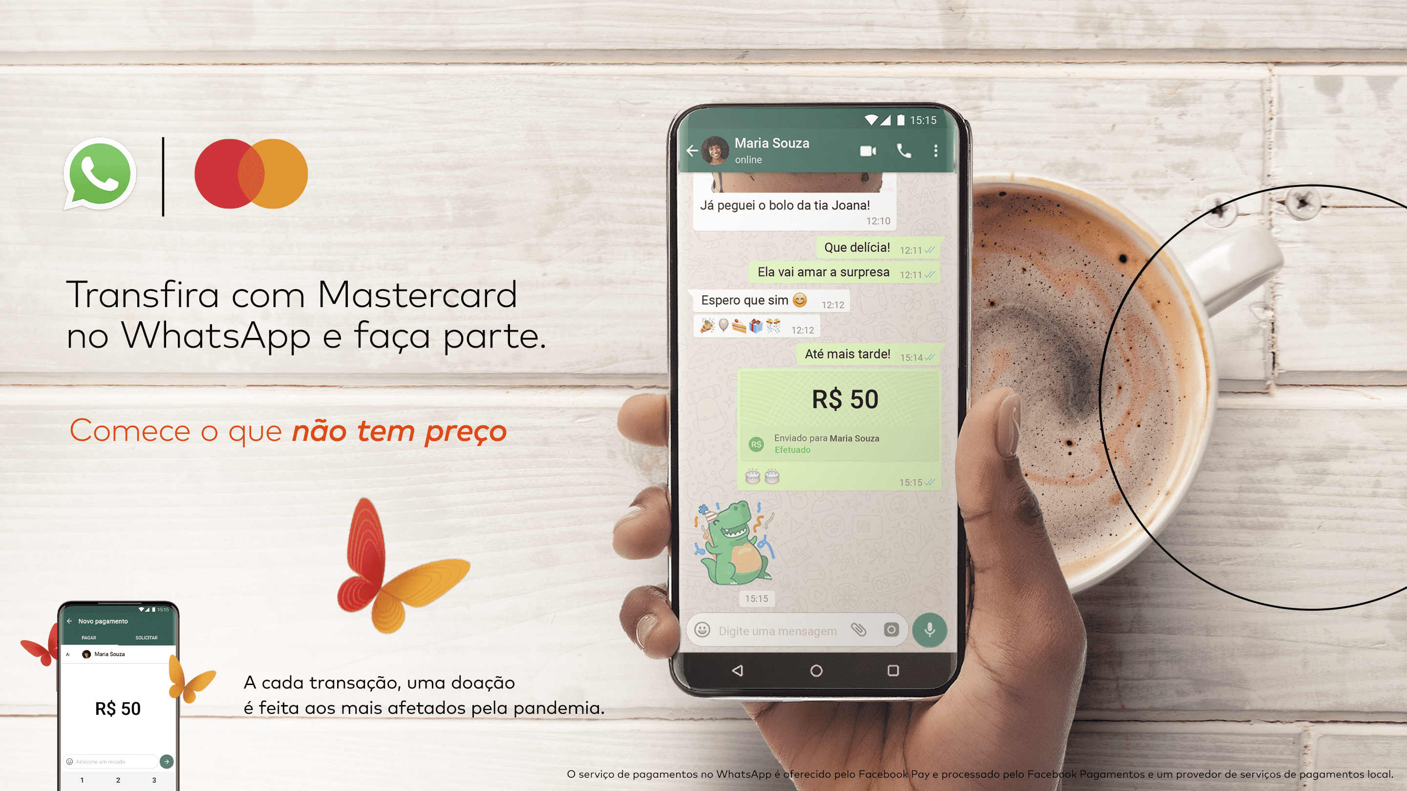 O serviço utiliza o Mastercard Send™ para permitir pagamentos em tempo real* para milhões de usuários do WhatsApp no Brasil que agora podem transferir dinheiro para amigos e familiares de maneira rápida, simples e segura. O Mastercard Send™ é parte da estratégia de expansão e interoperabilidade da Mastercard e permite que pessoas e organizações enviem e recebam dinheiro como, onde e quando quiserem, tanto por cartão quanto por trilhos de pagamento em tempo real, proporcionando maior escolha, acesso e controle financeiro.