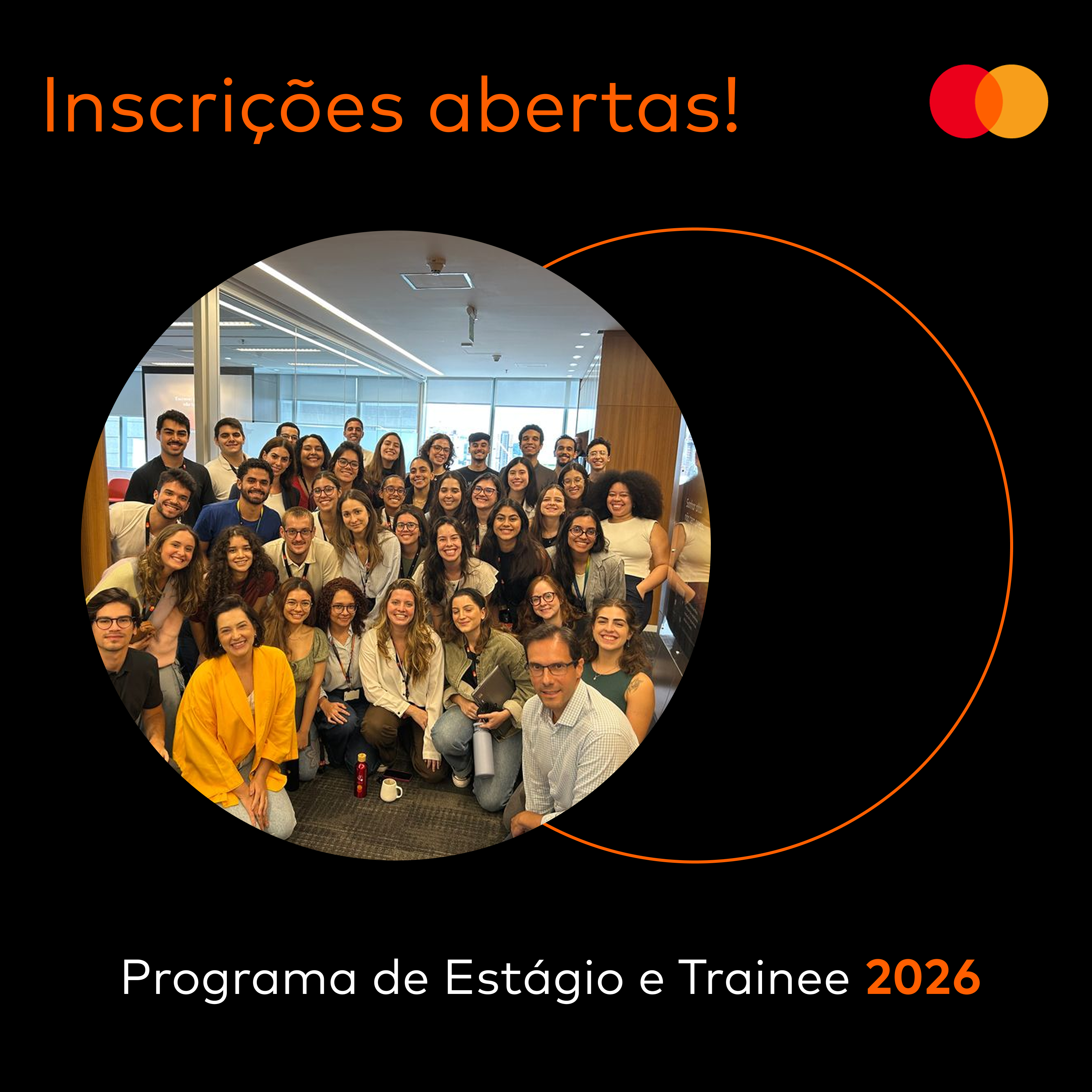 A Mastercard, líder da indústria de meios de pagamentos no Brasil, está com inscrições abertas para seus programas de estágio e trainee 2026 no Brasil. As oportunidades de estágio são voltadas a estudantes universitários com previsão de formação em dezembro de 2026, e as de trainee são voltadas a profissionais recém-formados - entre dezembro de 2024 e dezembro de 2025 - que queiram desenvolver suas carreiras em uma empresa inovadora de tecnologia e comprometida com o futuro dos pagamentos.