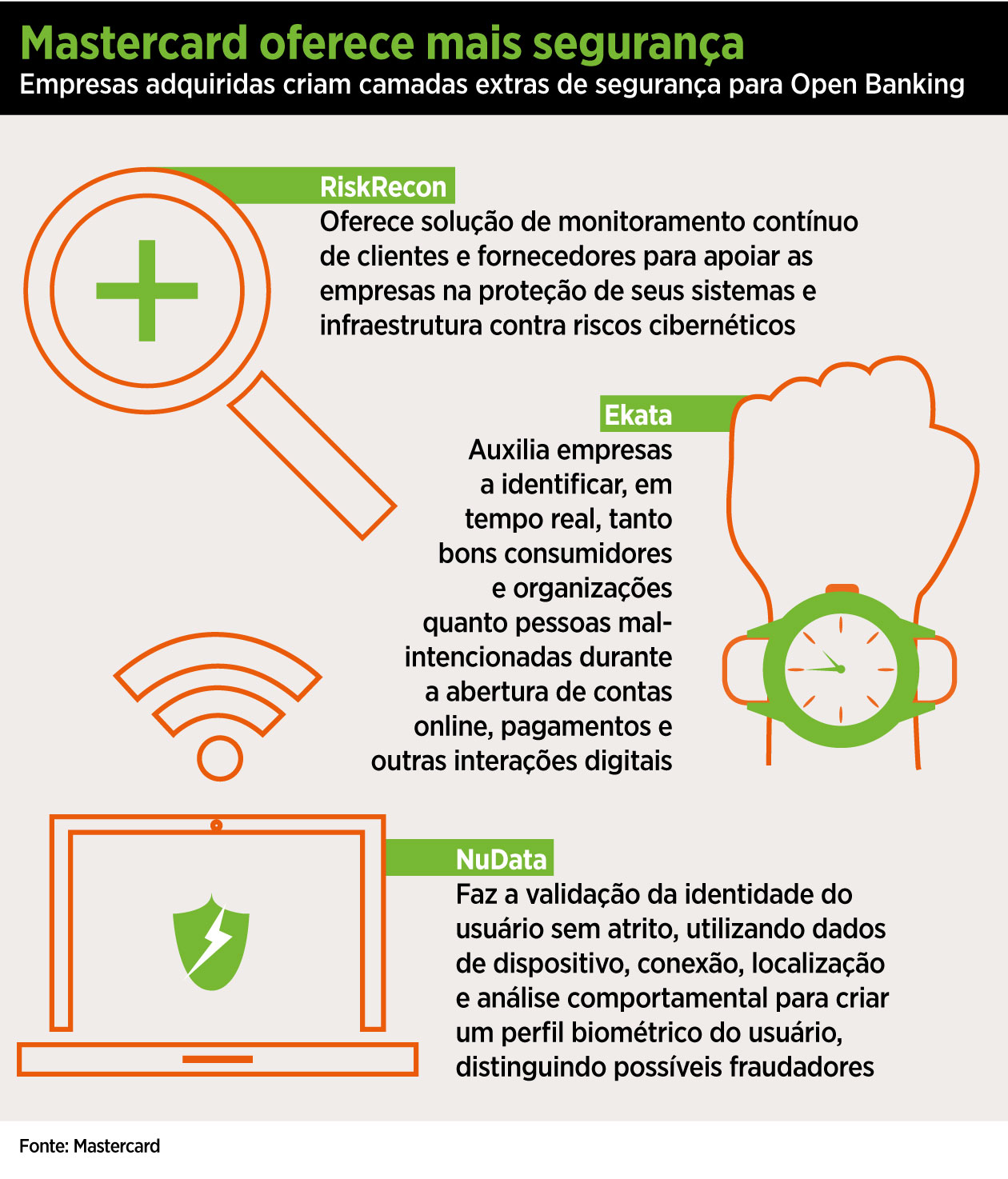 Com a aquisição de empresas cibernéticas e de inteligência como RiskRecon, NuData e Ekata, a Mastercard oferece soluções de ponta para fortalecer a segurança dos negócios com uma experiência descomplicada para os clientes (veja o infográfico a seguir).