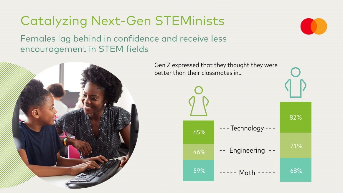 A lack of representation is only part of the equation, though. A recent online survey conducted by Mastercard of 3,803 boys and girls between the ages of 7 and 18 showed that lack of confidence and differences in motivation often keeps women and girls away from studying STEM and pursuing careers in the field.