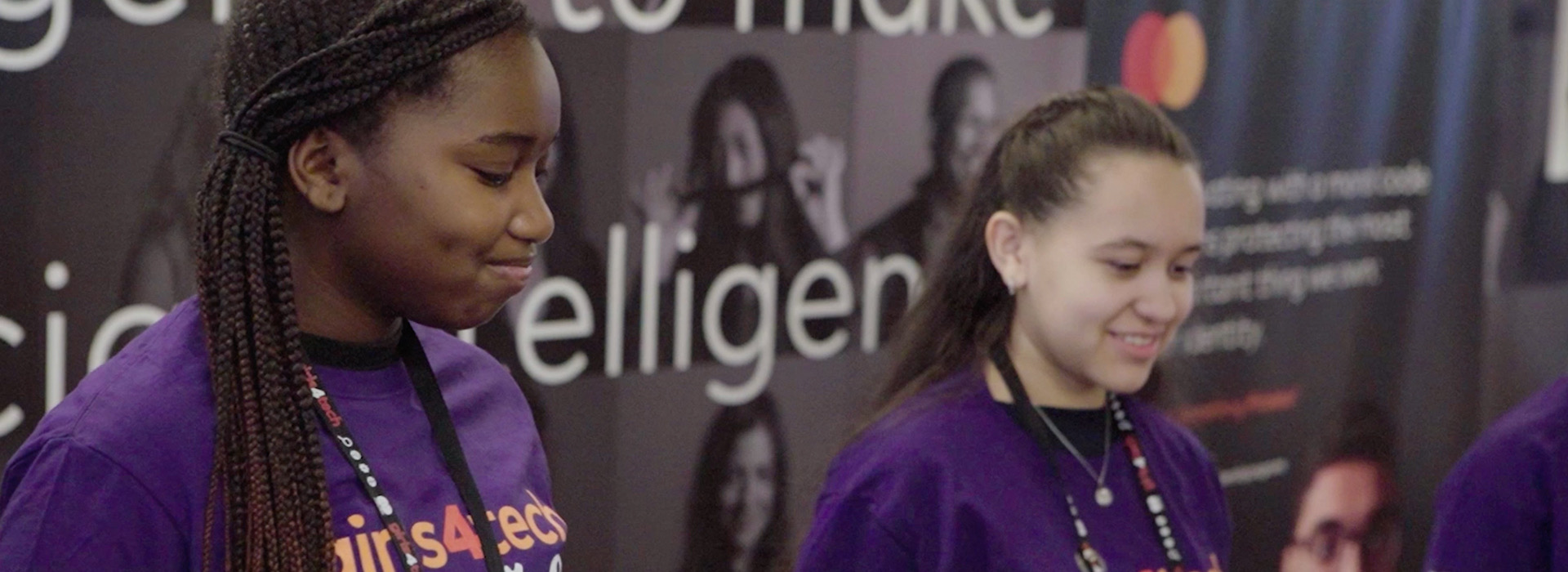 Top Photo: Madison Loren, left, participates in Girls4Tech, Mastercard's signature STEM program to inspire girls, ages 8 to 16, to build technology skills and become the future problem solvers of the world.