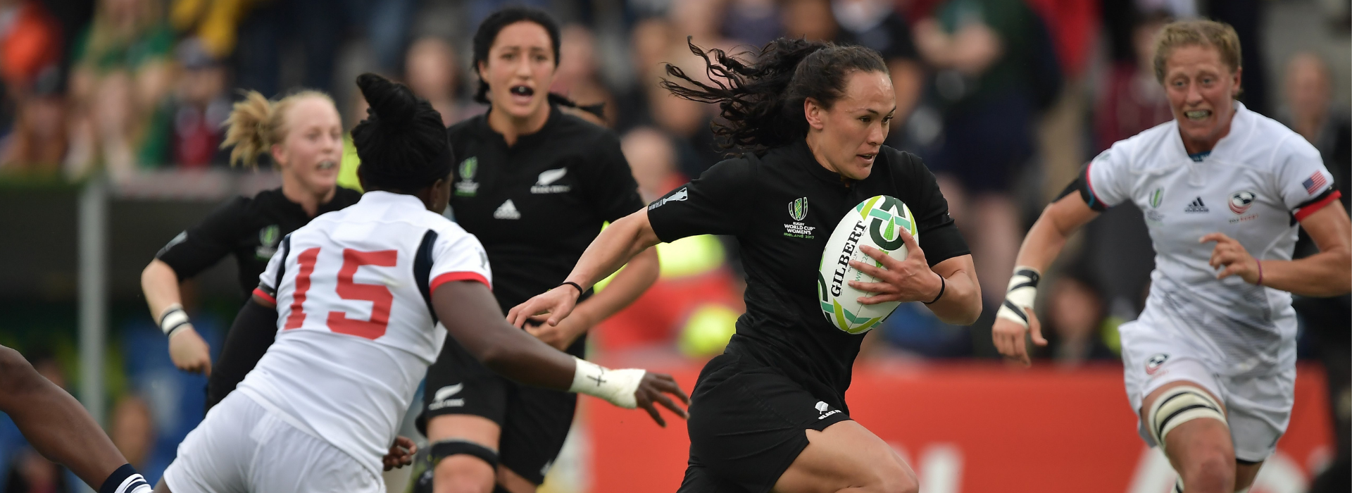 Top banner: The New Zealand national women's rugby team powers past the U.S. team in the semifinals of Rugby World Cup 2017. (Photo courtesy of World Rugby)