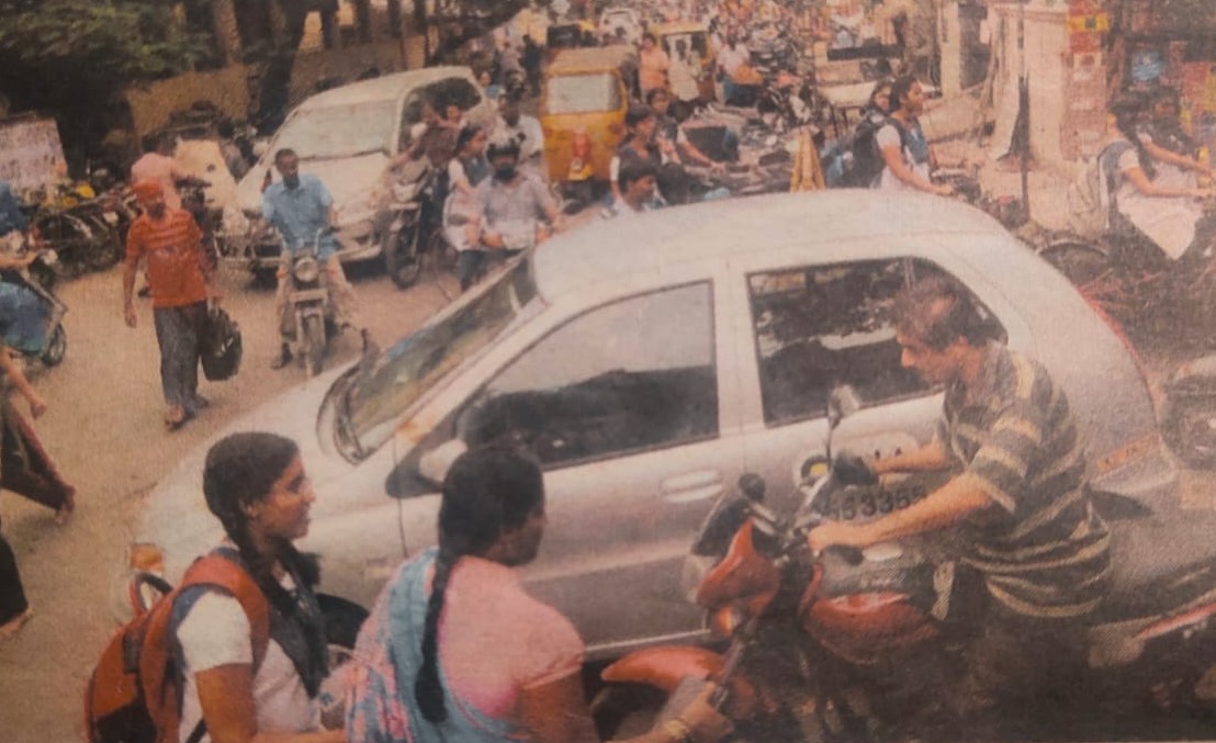 Teja Venkatesa Perumal, bottom left, on her way to school with her mother in Chennai, India. (Courtesy Teja Venkatesa Perumal)