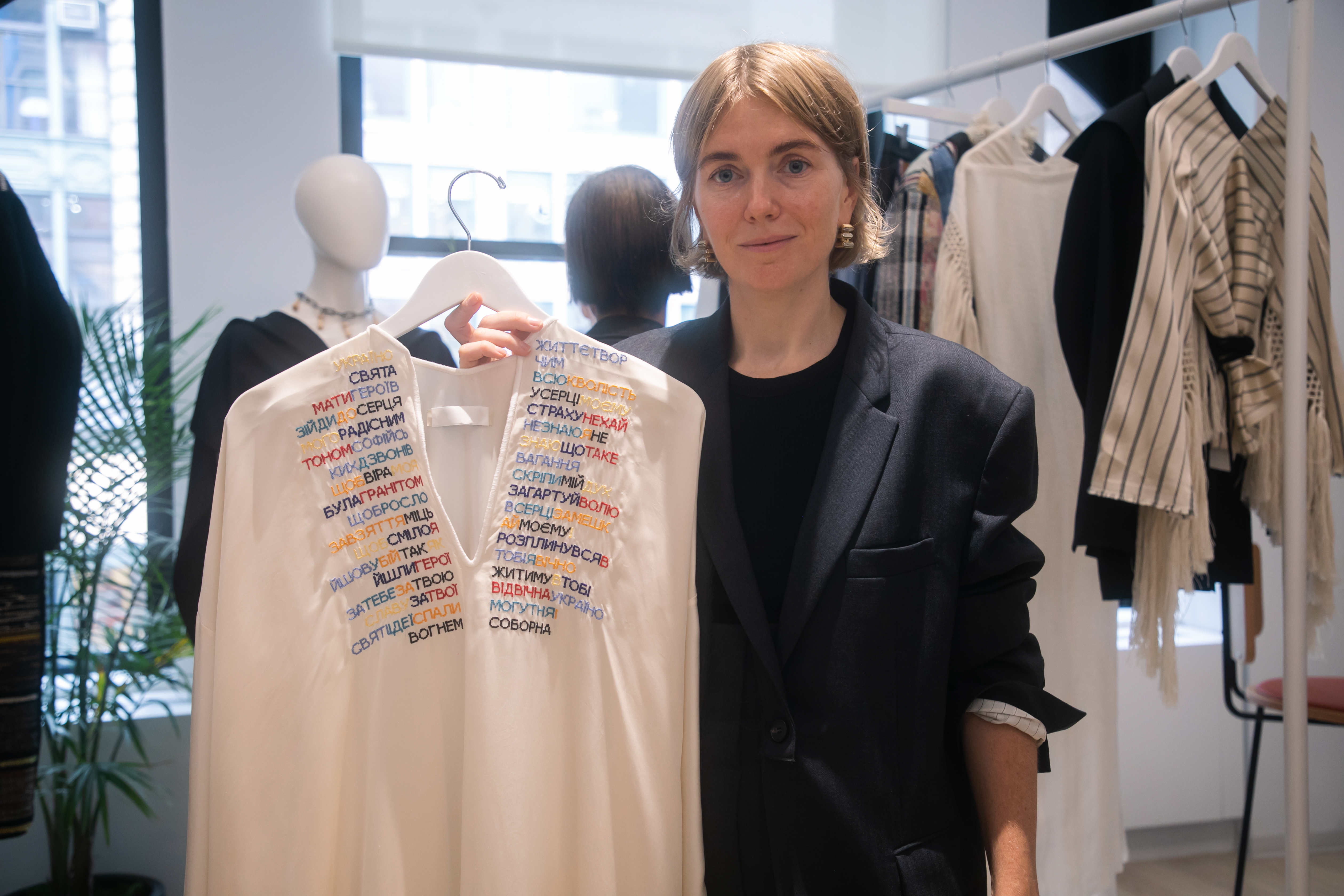 “It’s not really about just fashion,” Litkovska said, showing off a flowing white tunic embroidered with verses about the defenders of Mariupol, the eastern port city largely demolished during the war and which remains in Russian hands. “It’s about influence and culture. We are opening our culture through our collection and our messages.”