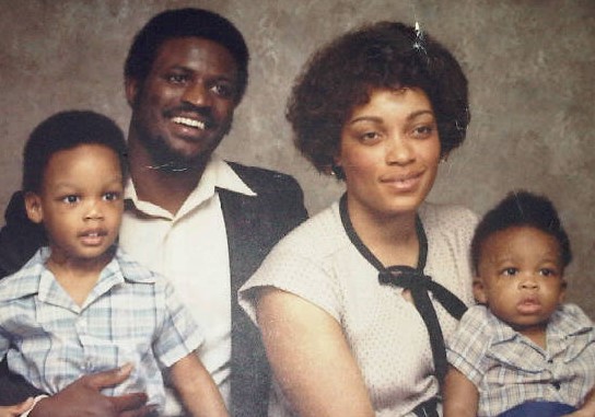 James Jones Jr., left, with his parents and younger brother. The family traveled to churches up and down the East Coast, where James Jones Sr., a musician, performed — but he often struggled to get paid . (Photo courtesy of James Jones Jr.)