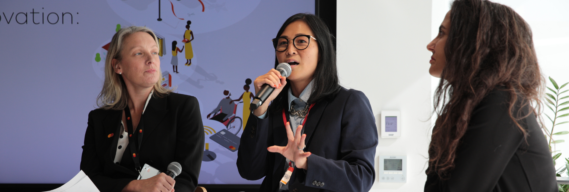 Banner photo, Jody Barnett, global lead for Mastercard's Public Sector Center of Excellence, Ya-Ting Liu, New York City's chief public realm officer, and Caterina Sarfatti, managing director for inclusion and global leadership, C40 Cities, shared insights into creating more livable cities at Mastercard's GovTech Idea summit. (Photo credit: Tanay Davis)