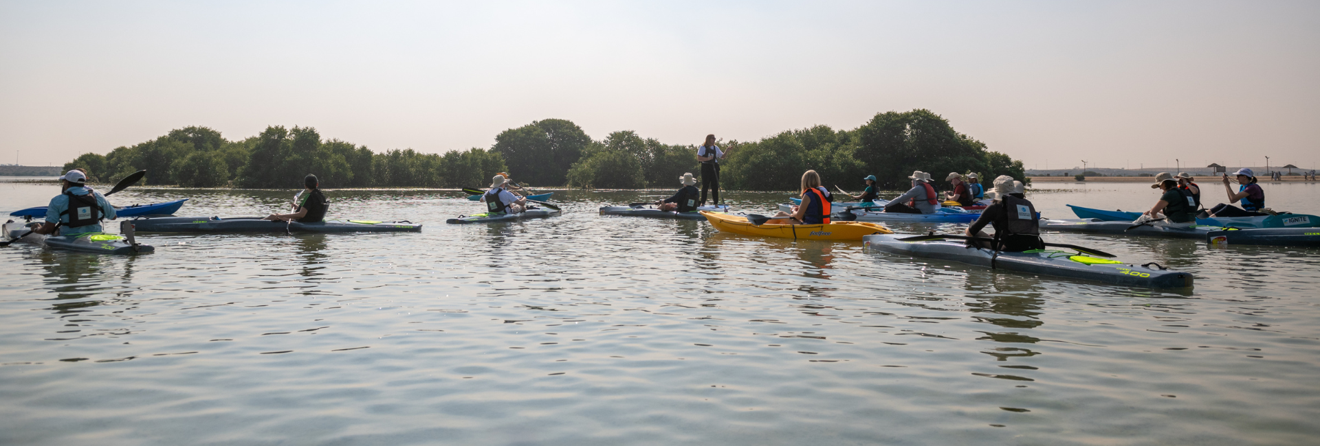 We’d been paddling along the southern shore of the Arabian Gulf for about half an hour when M. Sanjayan, the CEO of Conservation International, stilled our chattering with a single word. “Listen,” he said.