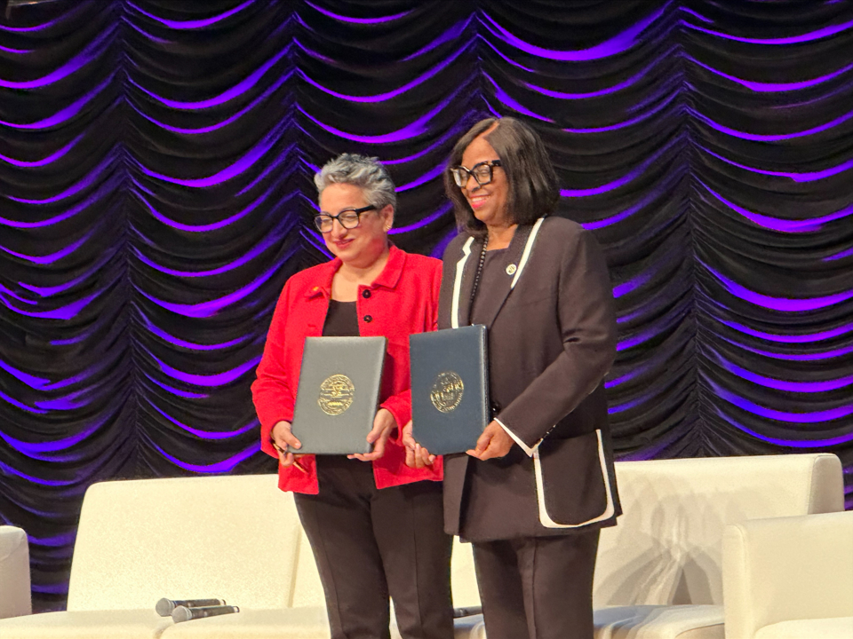 At the summit, Reta Jo Lewis, right, the president and chair of the Export-Import Bank of the United States, signed a memorandum of understanding with Shamina Singh, left, to encourage collaboration opportunities in support of small businesses. “At Mastercard, we want to elevate small businesses, as they are the engine of our nation’s economy,” Singh said. “This partnership with EXIM will allow us to support education and solutions, and further unlock financing solutions in the U.S., leading to more job creation and greater prosperity for small businesses and their communities.”