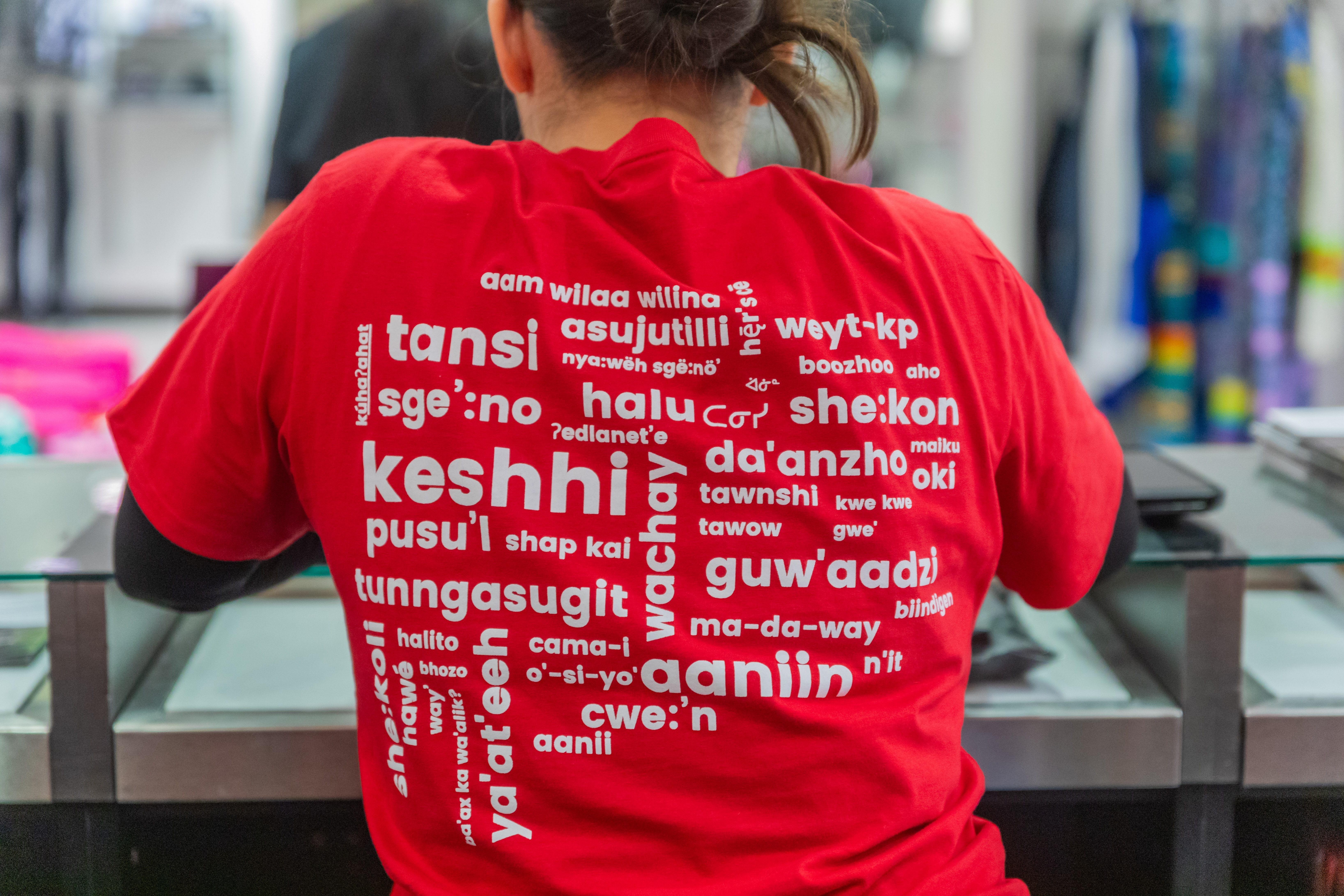 Pettit: When I announced that I was starting my business, my mom, who’s Belgian and Dutch, immediately asked, ‘Can I wear this T-shirt?’ I told her, of course, it’s just a T-shirt, not regalia. She asked, ‘What if I don’t know how to pronounce it or remember what it says?’ I said, ‘Indigenous people who don’t speak the language won’t know how to pronounce it either, or what it says.’